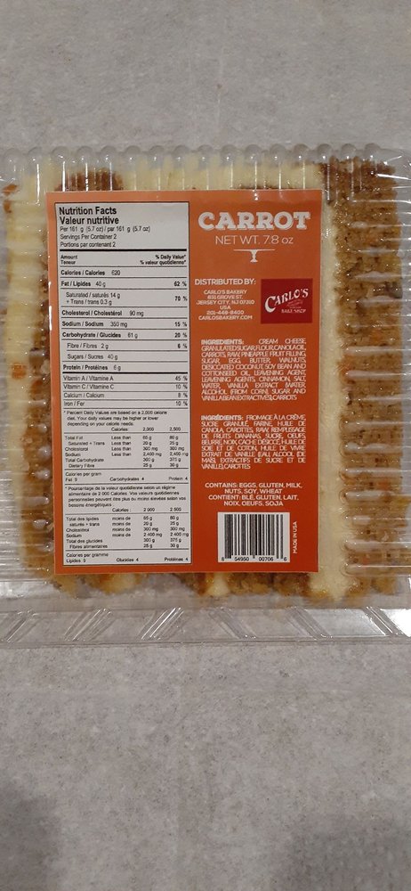 Here are the foods from our food nutrition database that were used for the nutrition calculations of this recipe. According to the Carlos Bakery website the prices of the cakes change depending on the bakery location cake size cake flavor and more. Within this North Jersey square mile town on the outskirts of New York City Carlos has become a true pastry landmark establishment.